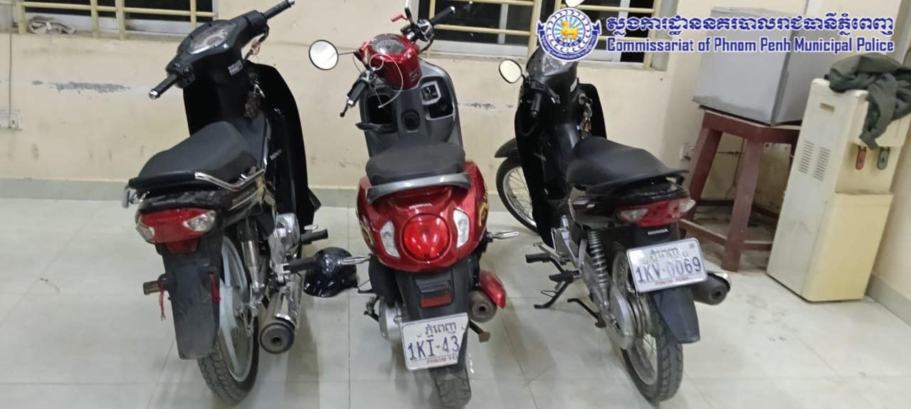 សម្ភារដកហូតមាន៖ ទូរស័ព្ទចំនួន ០៧ គ្រឿង, ម៉ូតូចំនួន ០៣គ្រឿង (១-ម៉ាកHond Dream ពណ៌ខ្មៅ , ២-ម៉ាកHonda Wave ពណ៌ខ្មៅ , ៣-ម៉ាក Honda Scoopy ពណ៌ក្រហម)។