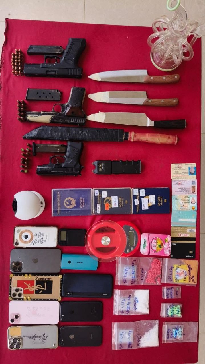 ស្វាយរៀង៖ ជនសង្ស័យជនជាតិវៀតណាម ៥នាក់ ដែលជាប់ទាក់ទិនក្នុងករណីជួញដូរ រក្សាទុក ប្រើប្រាស់ដោយខុសច្បាប់នូវសារធាតុញៀន និងកាន់កាប់រក្សាទុកអាវុធគ្រាប់រំសេវដោយគ្មានការអនុញ្ញាតត្រូវបានកម្លាំងជំនាញផែនការងារប្រឆាំងគ្រឿងញៀន នៃស្នងការដ្ឋាននគរបាលខេត្តស្វាយរៀង ឃាត់ខ្លួន និងបញ្ជូនទៅកាន់សាលាដំបូងខេត្ត ដើម្បីចាត់ការបន្តតាមច្បាប់។
