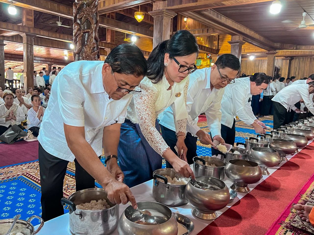 នៅក្នុងឱកាសនេះ ឯកឧត្តមអភិបាលខេត្ត និងលោកជំទាវ ក៏បានប្រគេនទ័យទានដល់ព្រះសង្ឃក្នុងទីអារាមខាងលើរួមមាន អង្ករ ០៥បេ ទឹកត្រី ០៥យួរ ទឹកស៊ីអ៊ីវ ០៥យួរ ទឹកសុទ្ធ ០៥កេស សៀង ០៥គីឡូ អំបិល ១០គីឡូ មី ០៥កេស ទឹកក្រូច ០៥កេស និងបច្ច័យ ០៤លានរៀល៕