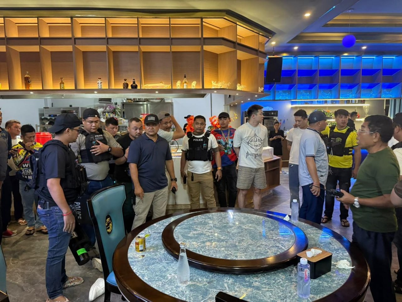 ក្នុងករណីនេះ បន្ទាប់ពីទទួលបានព័ត៌មានភ្លាមៗ ដោយអនុវត្តតាមអនុសាសន៍ នាយឧត្ដមសេនីយ៍ អគ្គស្នងការនគរបាលជាតិ និងមានការបញ្ជាផ្ទាល់ពី ឧត្ដមសេនីយឯក ស រដ្ឋា អគ្គស្នងការរង និងជាស្នងការនគរបាលខេត្តព្រះសីហនុ ព្រមទាំងមានការសម្របសម្រួលនីតិវិធីពី លោក ឆាយ សុត្រា ព្រះរាជអាជ្ញារង តំណាងអយ្យការអមសាលាដំបូងខេត្តព្រះសីហនុ លោកឧត្ដមសេនីយ៍ត្រី ណុប បញ្ញា ស្នងការរងផែនការងារនគរបាលព្រហ្មទណ្ឌ ដឹកនាំកម្លាំងជំនាញចុះទៅដល់ទីតាំងកើតហេតុ ដោយឃាត់ខ្លួនបានជនសង្ស័យជនជាតិចិន ១៤នាក់ (ស្រី១នាក់) និងដកហូតបានអាវុធខ្លី១ដើម ម៉ាក Zoraki មានបង់១ គ្រាប់១គ្រាប់។