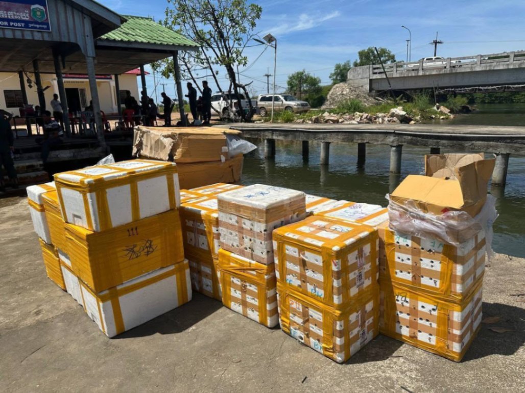 សាច់បង្កក ដូចជា ជង្គង់មាន់ ស្លាបមាន់ ក្ដាម ជិត ១តោន ទើបត្រូវបានដុតកម្ទេចចោលមុននេះ ដោយកាលពីម៉ោង ៣ ទាបភ្លឺ នៅថ្ងៃទី១៧ ខែតុលា ឆ្នាំ២០២៥ កម្លាំងនរគបាលប៉ុស្ត ការពារ ព្រែកកោះយ៉ នៃវរ:នគបាលការពារព្រំដែនជើងទឹកលេខ២៦៩ ខេត្តកោះកុង បានឃាត់ទូកដឹកសាច់បង្កកពីថៃ តាមផ្លូវទឹកចូលខេត្តកោះកុង រឹបអូសបានសាច់បង្កកជាច្រើនប្រភេទ ព្រមទាំងឃាត់ខ្លួនមនុស្សបាន ៣នាក់។