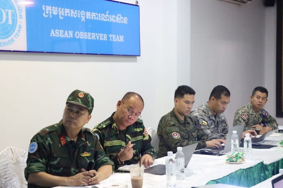 នៅថ្ងៃសុក្រ ទី៥ ខែធ្នូ ឆ្នាំ២០២៥ វេលាម៉ោង ០៩:៣០នាទីព្រឹក ក្រុមការងារសម្របសម្រួលអ្នកសង្កេតការណ៍របស់ក្រសួងការពារជាតិ នៃព្រះរាជាណាចក្រកម្ពុជា (CLG) បានធ្វើការសម្របសម្រួលជូនដល់ក្រុមអ្នកសង្កេតការណ៍អាស៊ាន (AOT) ទទួលស្តាប់បទបង្ហាញពីលោក ព្រំសឿន វឌ្ឍន: ប្រធានក្រុមវាស់វែងចម្រុះកម្ពុជា-ថៃ នៃរដ្ឋលេខាធិការដ្ឋានកិច្ចការព្រំដែន ស្តីពីវឌ្ឍនភាព នៃការបោះបង្គោលព្រំដែនលេខ ៥២-៥៩ (ឃុំកំរៀង និងឃុំបឹងរាំង ស្រុកកំរៀង ខេត្តបាត់ដំបង) នៅទីស្នាក់ទី២ ក្រុងសិរីសោភ័ណ ខេត្តបន្ទាយមានជ័យ ។