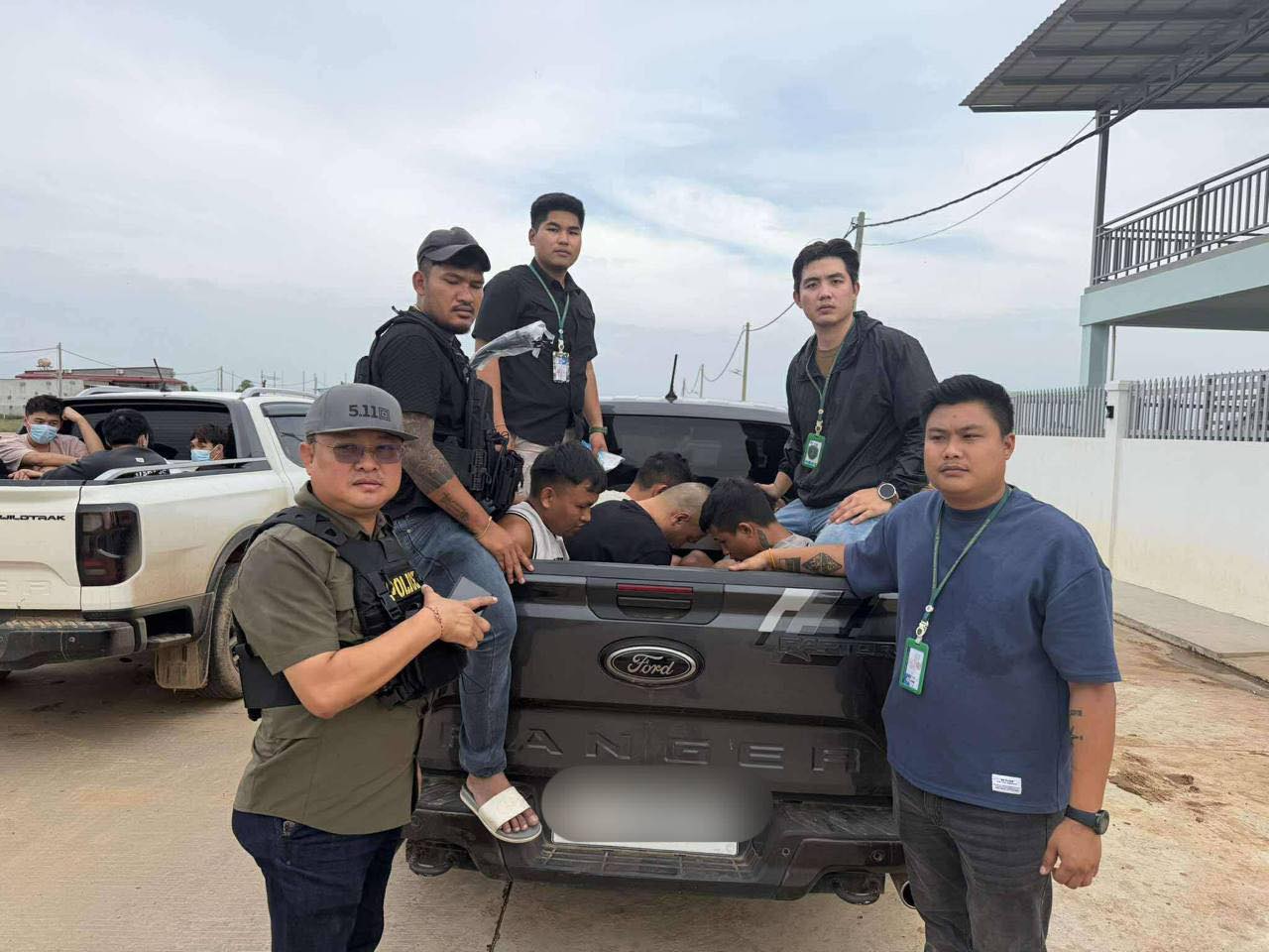 លុះនៅថ្ងៃខែឆ្នាំដដែល វេលាម៉ោង ១៤៖៥០នាទី កម្លាំងជំនាញបានធ្វើការឃាត់ខ្លួនជនសង្ស័យចំនួន ០៨នាក់ រួមមាន៖