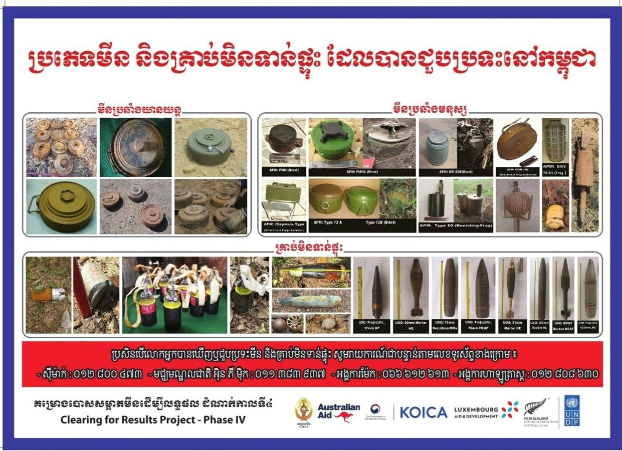 ជាមួយគ្នានេះ អាជ្ញាធរមីនសូមអំពាវនាវ សូមកុំចូលតំបន់ណាដែលសង្ស័យបន្សល់គ្រាប់យុទ្ធភណ្ឌមិនទាន់ផ្ទុះសេសសល់ពីសង្គ្រាម និងមុនចូលតំបន់នោះត្រូវសាកសួរព័ត៍មានពីអាជ្ញាធរមានសមត្ថកិច្ច មេភូមិ មេឃុំ និងប៉ុស្តិ៍នគរបាល។