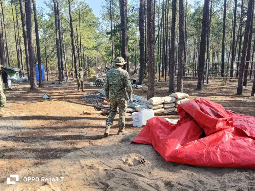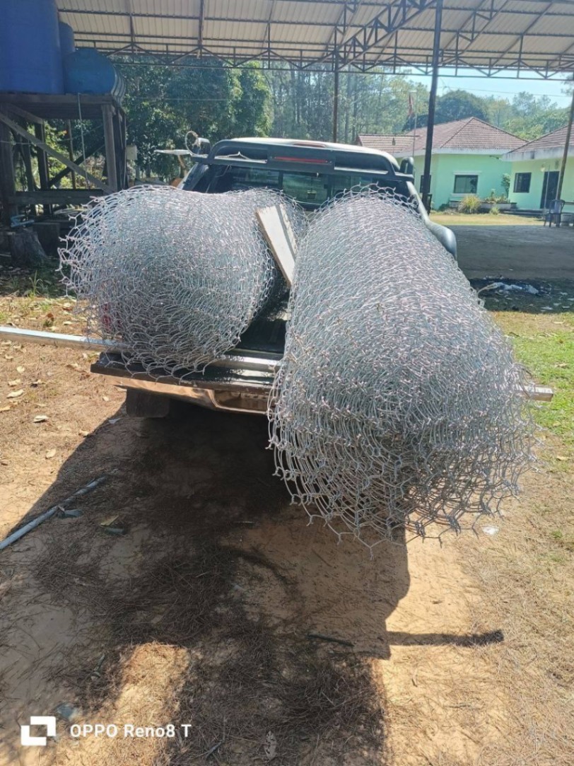 ក្រុមការងារបានដកហូតវត្ថុតាងរួមមានលួសសំណាញ់ចំនួន៨ដុំ ស៊ីម៉ងត៏ចំនួន១៣បេ ធុងទឹកចំណុះ៥០០០ លីត្រចំនួន១ កាមេរ៉ាចំនួន៤គ្រាប់ សូឡាចំនួន៣ផ្ទាំង និងដែក៣០គុណនិង៣០គុណ២ម៉ែត្រ១៣២ ដើម ដែក៧៥ គុណនឹង៧៥ គុណនឹង២ ម៉ែត្រចំនួន៦៦ដើម ដែក៣០គុណ និង៣០គុណនិង៦ម៉ែត្រ ១៥០ដើម ដែក៧៥គុណនឹង៧៥ គុណនិង៦ម៉ែត្រចំនួន៣ដើម ដែកសរសៃ១០លី ចំនួន៤៥ ដើម។