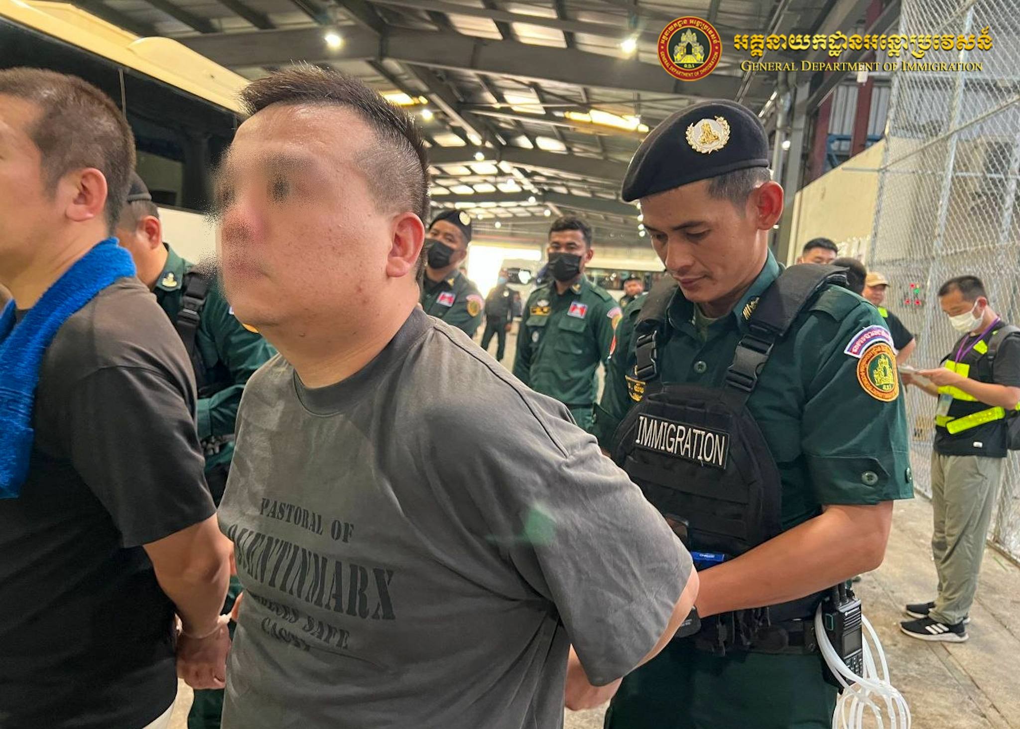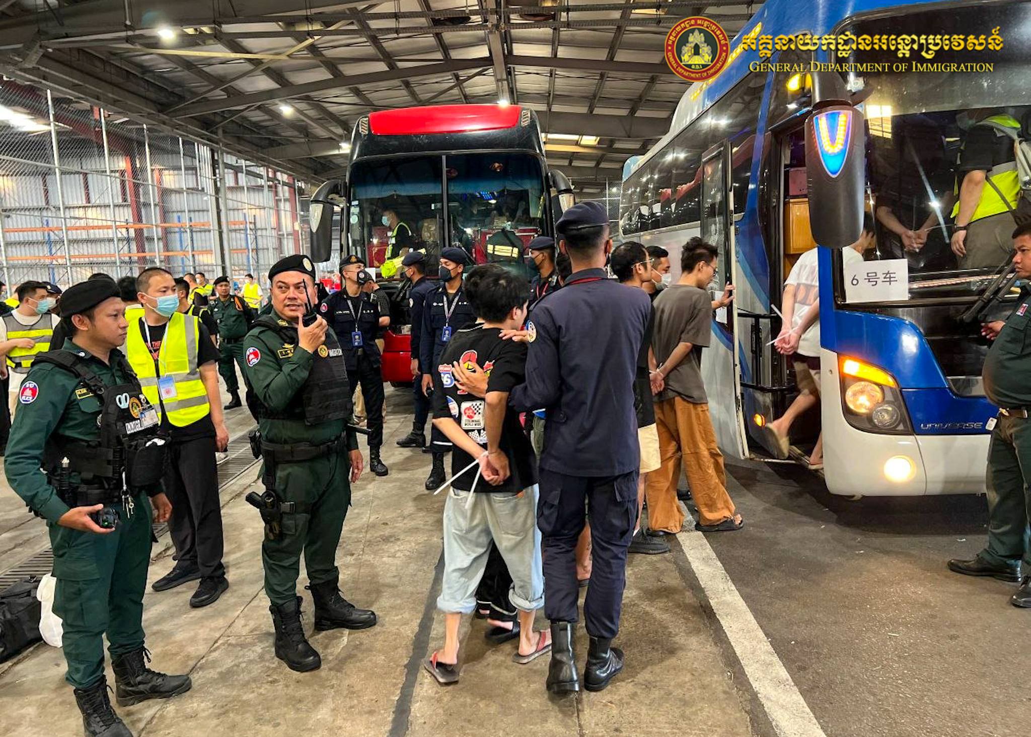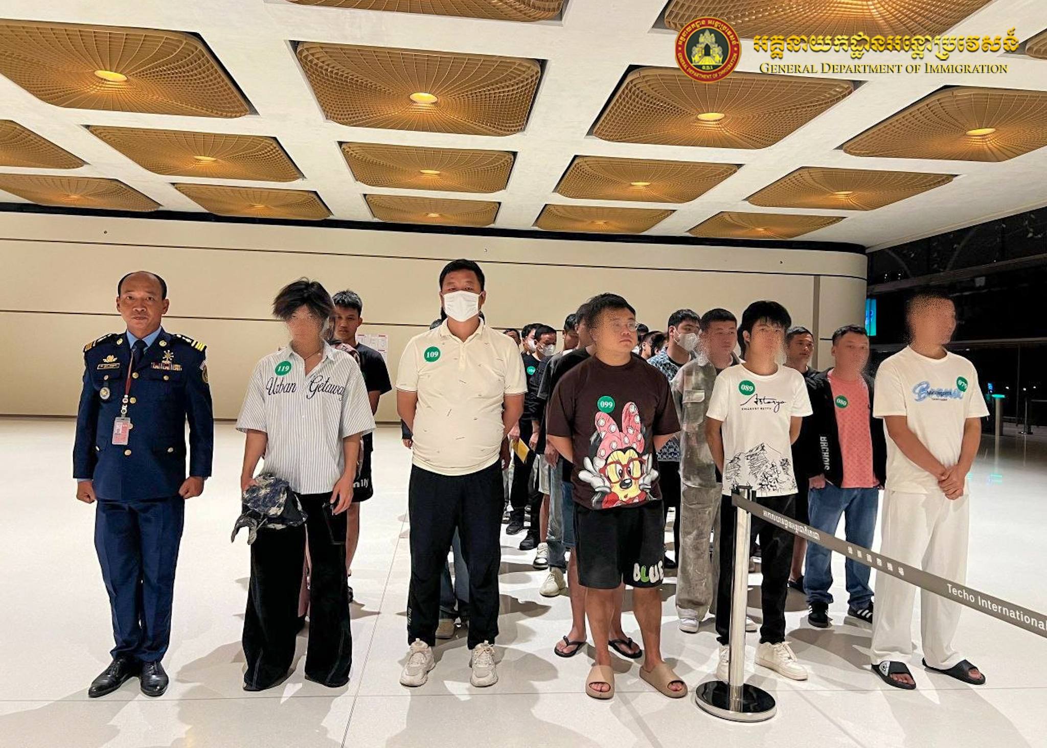 នៅយប់ថ្ងៃទី២៧ ឈានចូលថ្ងៃទី២៨ ខែមីនា ឆ្នាំ២០២៦ អនុវត្តតាមអនុសាសន៍ដ៏ខ្ពង់ខ្ពស់ របស់ឯកឧត្តមអភិសន្តិបណ្ឌិត ឧបនាយករដ្ឋមន្ត្រី រដ្ឋមន្ត្រីក្រសួងមហាផ្ទៃ ឯកឧត្តម សន្តិបណ្ឌិត និងថ្នាក់ដឹកនាំក្រសួងមហាផ្ទៃ ឯកឧត្តម ឧត្តមសេនីយ៍ឯក សុខ វាសនា អគ្គនាយកអន្តោប្រវេសន៍ បានណែនាំឱ្យនាយកដ្ឋានស៊ើបអង្កេត និងអនុវត្តនីតិវិធី សហការជាមួយស្ថានទូតចិនប្រចាំនៅព្រះរាជាណាចក្រកម្ពុជា បន្តធ្វើការបណ្តេញជនជាតិចិនសរុបចំនួន ៣២៧នាក់ (ស្រី២០នាក់) ពាក់ព័ន្ធករណីឆបោកតាមប្រព័ន្ធអនឡាញ (Online Scams) និងករណីលួចស្នាក់នៅ ធ្វើការងារខុសច្បាប់ ត្រូវបានបណ្ដេញចេញតាមរយៈយន្តហោះពិសេស នៅប៉ុស្តិ៍នគរបាលច្រកទ្វារអាកាសអន្តរជាតិតេជោ។